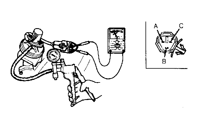 - With EGR vacuum hose disconnected, connect vacuum pump. Turn ignition on and check voltages at connector. Use EGR POSITION SENSOR VOLTAGE