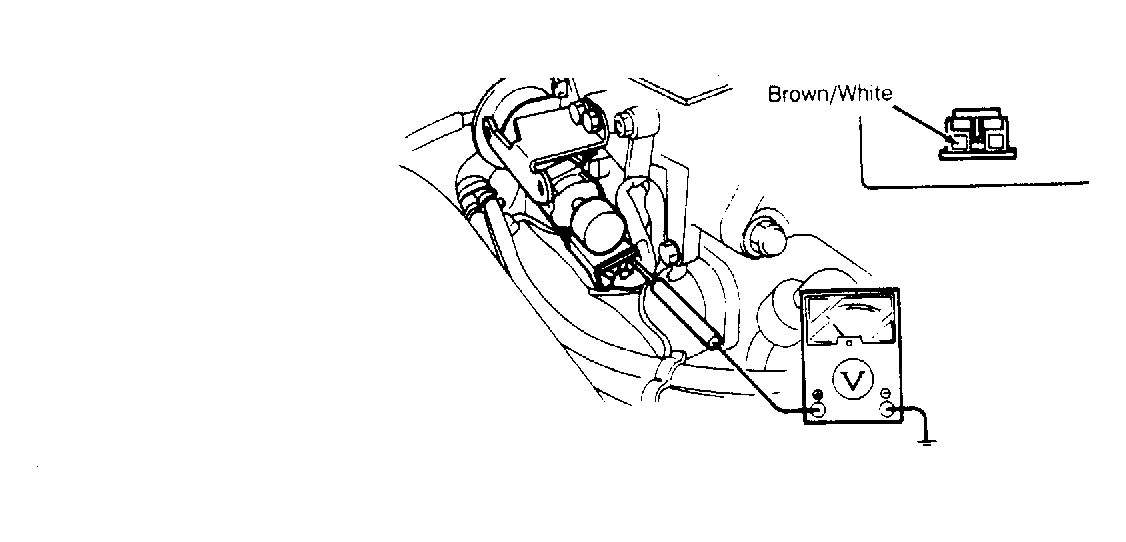 - Connect voltmeter between solenoid valve Brown/White wire and ground. See Fig 1