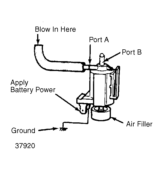 2. Disconnect electrical connector and apply battery voltage to valve terminals. Blow air in port "B", air should exit at port "A".