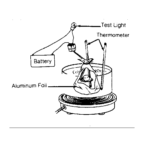 - To check heat hazard sensor, remove sensor. Wrap sensor and thermometer with aluminum foil to prevent oil penetration. Place thermometer and sensor in container of oil.
