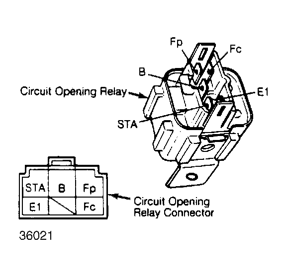- With ignition on, 12 volts should exist at the "Fc" and "B" terminals and no voltage should exist at the "Fp", "STA" and "E1" terminals. With airflow meter measuring plate open, 12 volts should exist at the "Fp" and "B" terminals and no voltage should exist at the "Fc", "STA" and "E1" terminals.