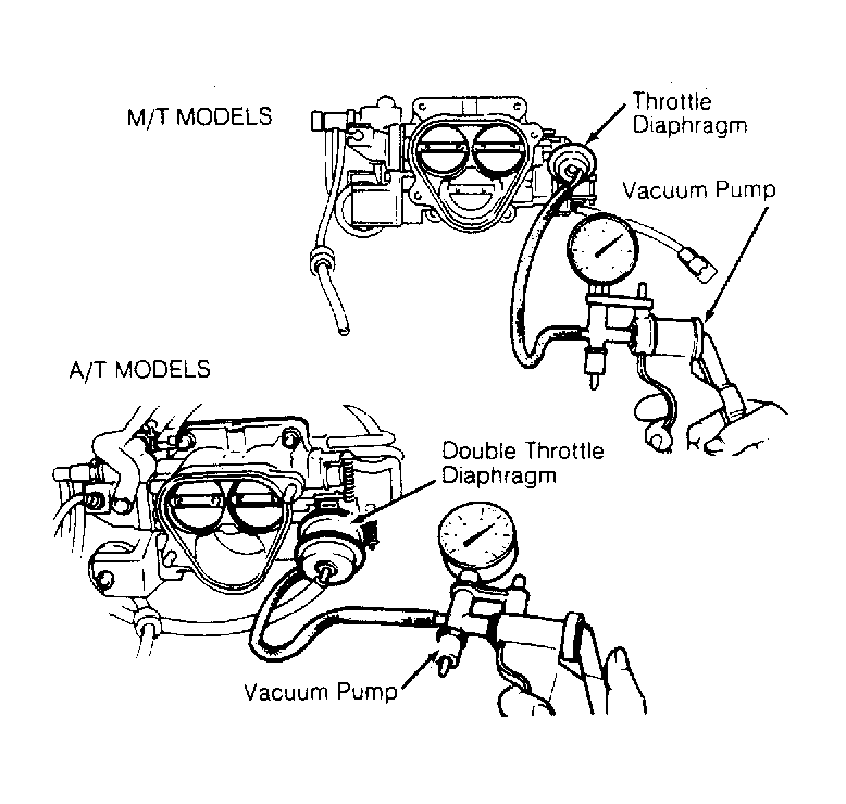 - On M/T models, disconnect hose at throttle diaphragm. Using vacuum pump, apply at least 7.8 in. Hg to throttle diaphragm. See Fig 1