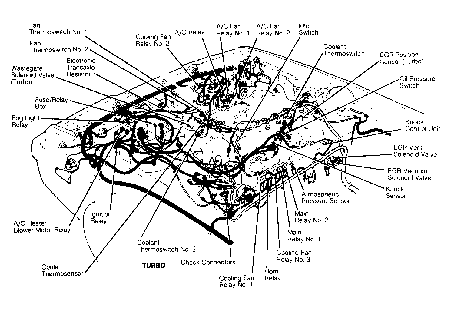 | Engine Compartment | On right side of battery. See Figure & Figure . | |