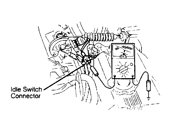 Unplug idle switch connector. Check continuity between switch and ground. See IDLE SWITCH CONTINUITY table. See Fig 1 . If switch does not pass test, check harness for open or short circuits. Replace idle switch if necessary. On MX-6 and 626, if idle switch needs replacing, entire throttle body must be replaced.
