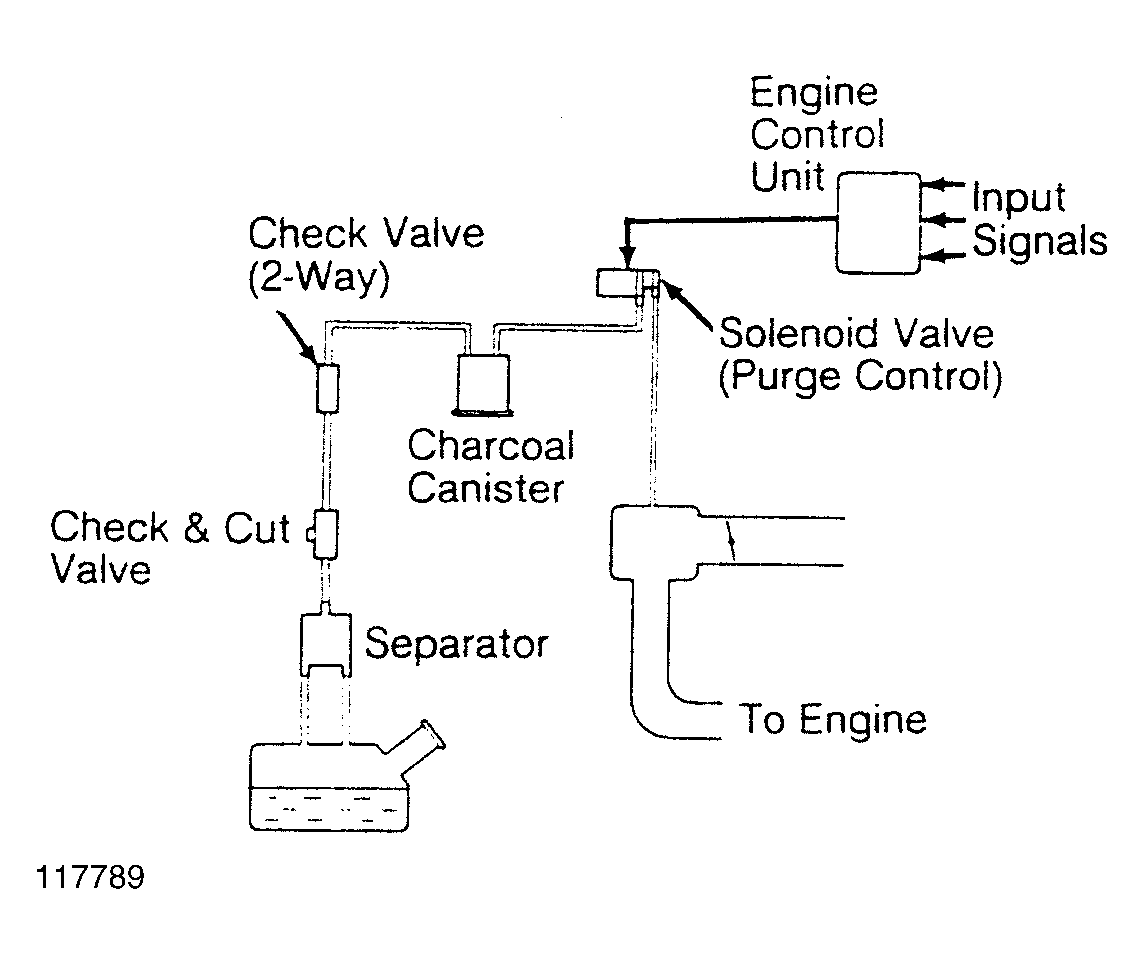 Purge system operation takes place when the following conditions are met. Vehicle is accelerating in gear (off idle), engine is at operating temperature and oxygen sensor is functioning normally. See Fig 1 .