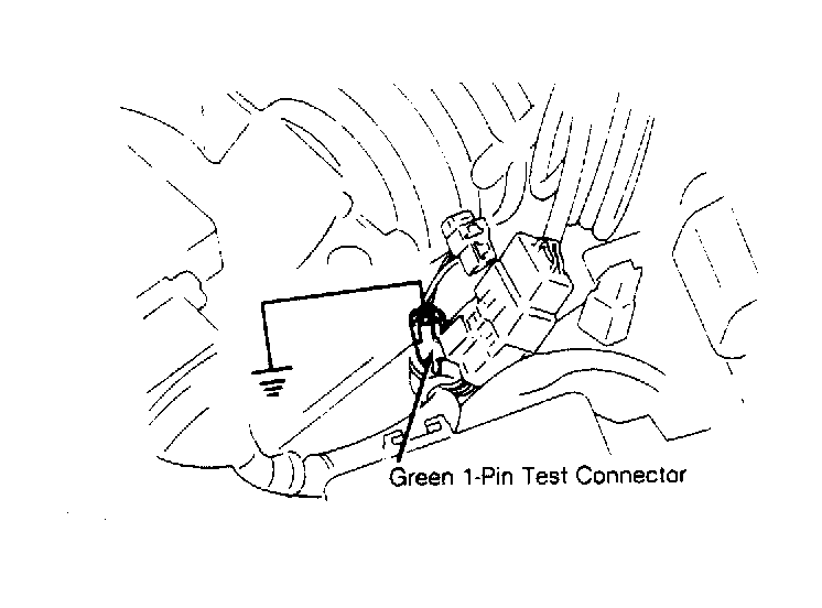 1. Using jumper wire, ground Green 1-pin connector. Connector is located at left front wheelwell. See Fig 1 .