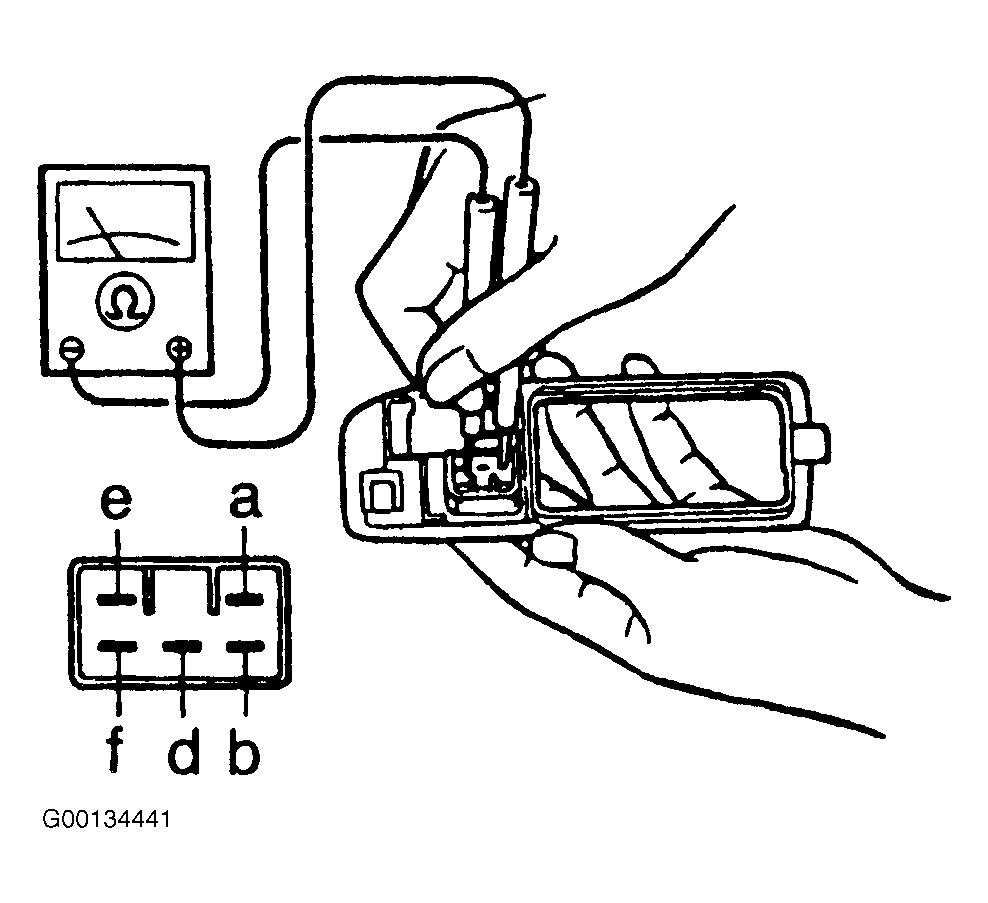 Check continuity across specified terminals of sub-switch connector with switch button held in specified position. See SUB-SWITCH CONTINUITY table. See Fig 1 . Replace sub-switch if continuity is not as specified.