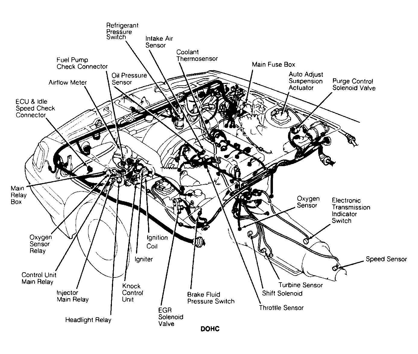| Knock Control Unit | In front of left shock tower, next to main relay box. See Figure . |