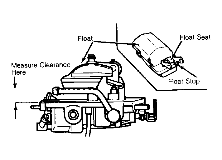 - Remove air horn from carburetor. Remove gasket from air horn. Invert carburetor and allow float to hang by its own weight. Measure clearance between top of float and air horn. See Fig 1