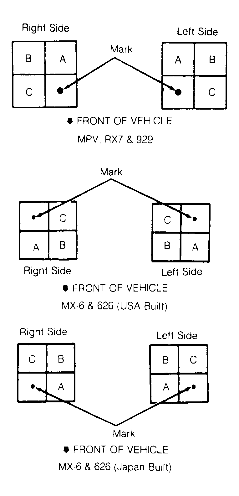 Raise and support front of vehicle. Remove upper strut-to-body nuts. Push strut mounting block downward and turn to desired position. Reinstall and tighten nuts. See Figure.