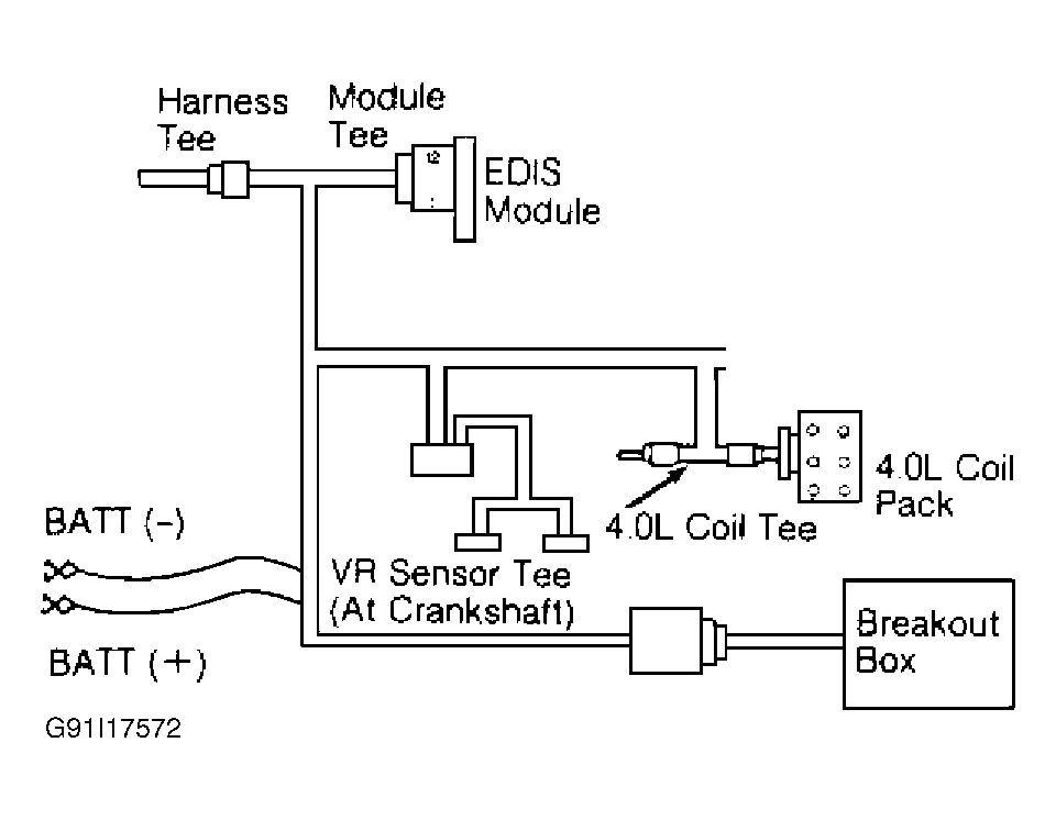 - Turn key off. Connect EDIS Diagnostic Cable (007-00059) to Breakout Box (T83L-50-EEC-IV), EDIS module and coil pack. DO NOT