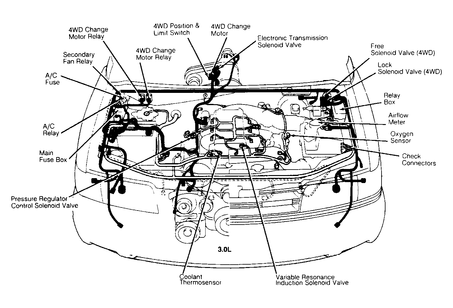 | Engine Compartment (3.0L) | On right rear of right engine compartment, on inner fender panel. See Figure . | |