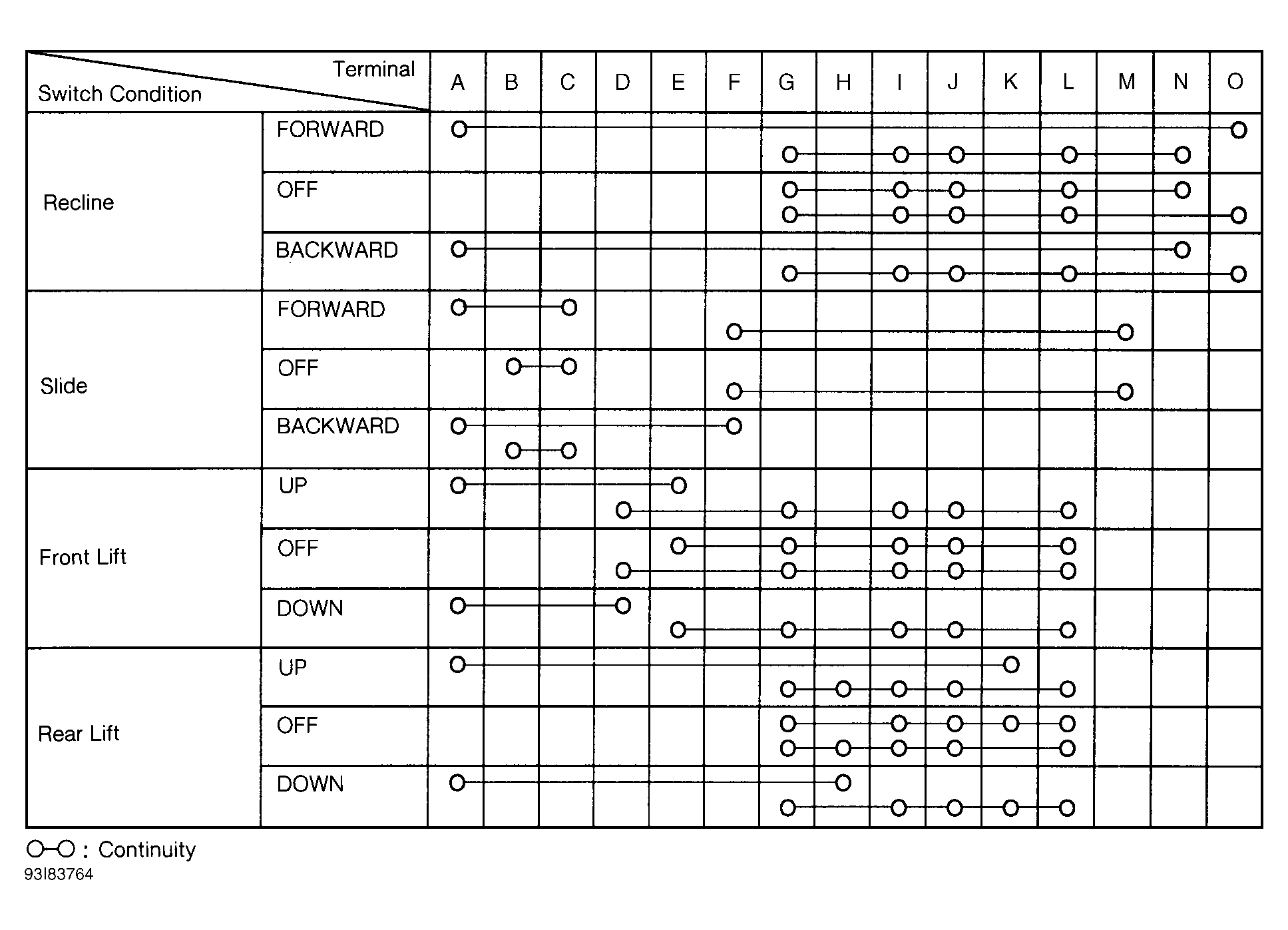 Disconnect control switch connector. With control switch in specified position, check continuity between specified terminals of control switch connector. See Fig 1 . If continuity between control switch connector terminals is not as specified, replace control switch.