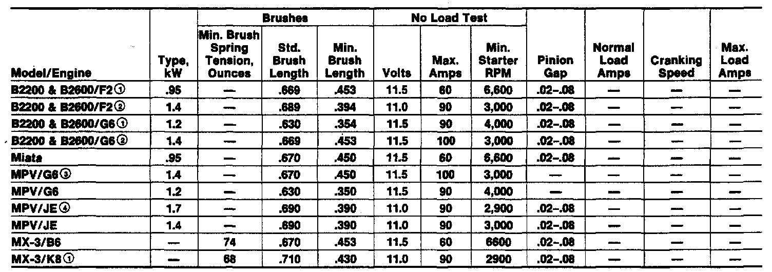 Starter Specifications (Part 2):