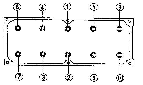 Tighten the cylinder head bolts in two or three steps in the order shown.
