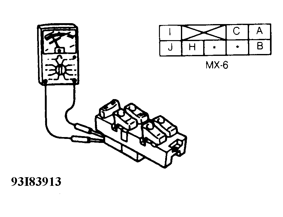 Check continuity across specified terminals of main switch connector with main switch button held in specified position. See MAIN SWITCH CONTINUITY TEST . SeeFig 1 and Fig 2 . Replace main switch if continuity is not as specified.