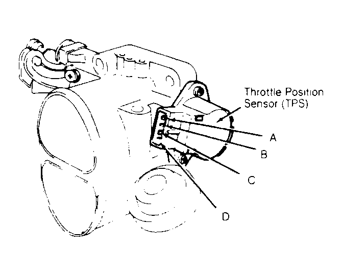 - Insert a feeler gauge of specified thickness between throttle lever and throttle stop screw. See TP SENSOR ADJUSTMENT (3.0L) table. Check continuity between TP sensor connector terminals "C" and "D". See Fig 1 .