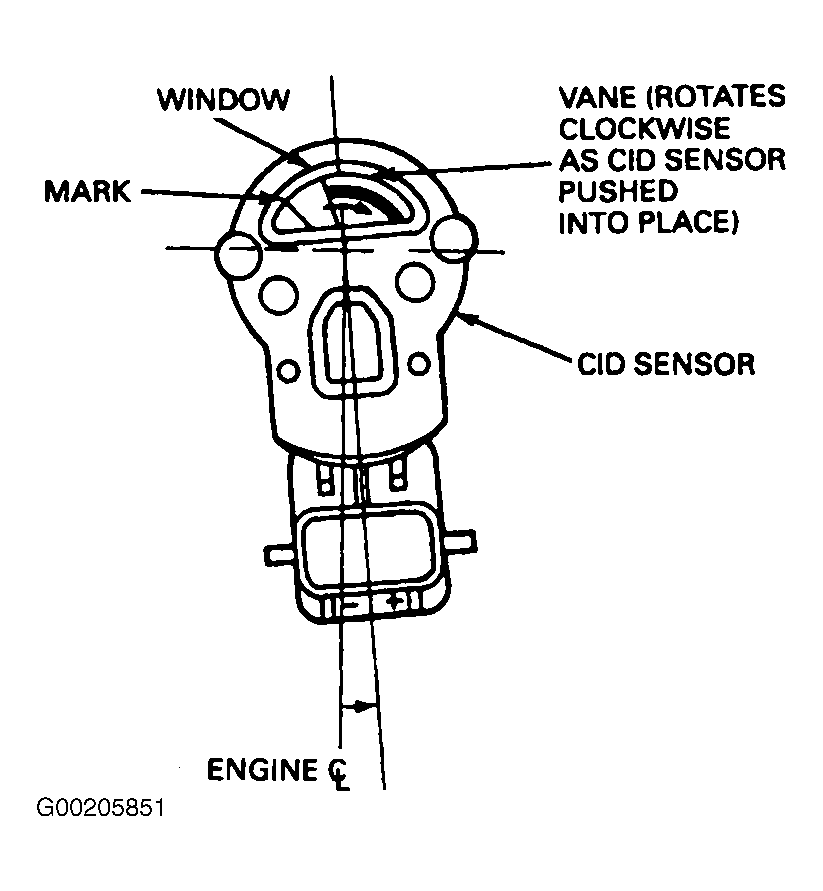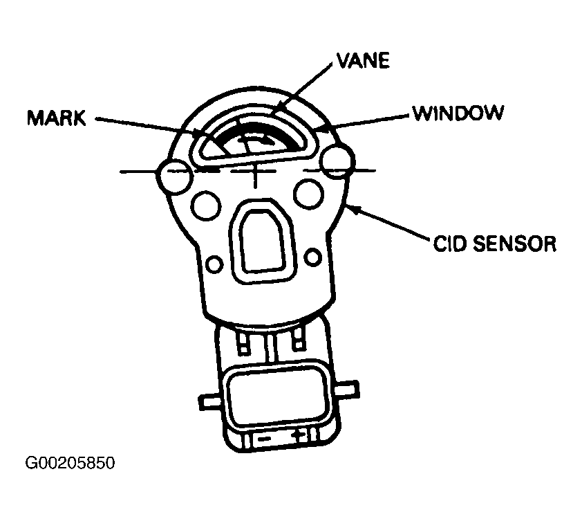 - Align sensor rotor with trailing edge of vane lined up with short mark at the left hand side of the plastic window. See Fig 2 . Position the sensor above its hole at right angles to the block rear face with wiring connector pointing rearward.