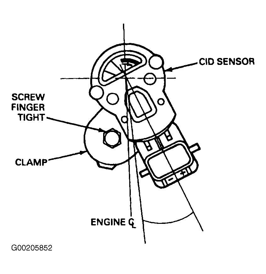 Rotate sensor clockwise past switching point from battery voltage to zero volts. Rotate sensor counterclockwise and stop at exact point voltmeter switches from zero volts to battery voltage. Tighten CMP sensor hold down bolt to specification. See TORQUE SPECIFICATIONS . Disconnect testing harness and connect sensor harness.