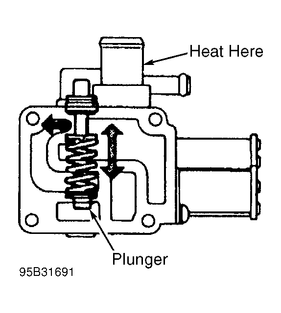 Remove BAC valve from throttle body. Let valve cool. Place air valve in water at temperature greater than 176°F (80°C) or heat with heat gun. Plunger should move outward. See Fig 1 .