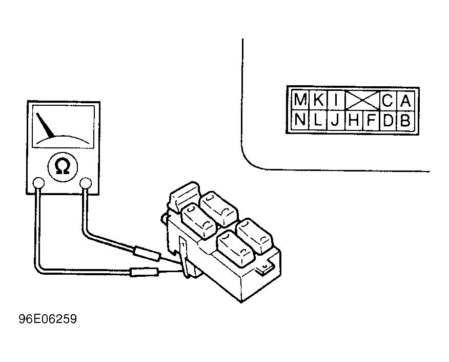 Check continuity across specified terminals of main switch connector with main switch button held in position. SeeFig 1 . See appropriate MAIN SWITCH CONTINUITY TEST . Replacemain switch if continuity is not as specified.