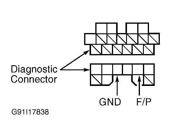 Connect jumper wire between GND and F/P terminals of data link connector. See Fig 1. Turn ignition on for about 10 seconds and then off. Disconnect jumper wire.