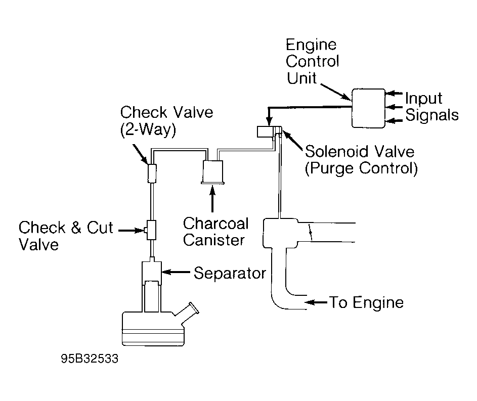 Purge system operation takes place when vehicle is accelerating in gear (off idle), engine is at operating temperature and oxygen sensor is functioning normally. See Fig 1 .