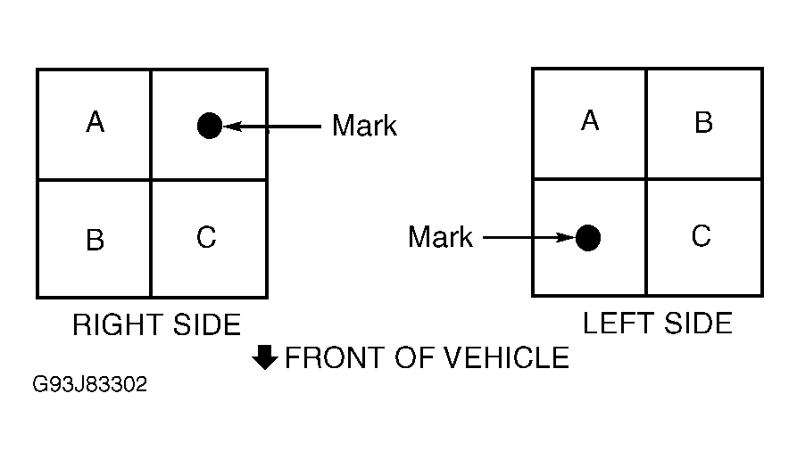 Raise and support front of vehicle. Remove upper strut-to-body nuts. Push strut mounting block downward, and turn to desired position. See Figure . See CASTER ADJUSTMENT (MPV) table. Rein-stall and tighten nuts to specification. See TORQUE SPECIFICATIONS .