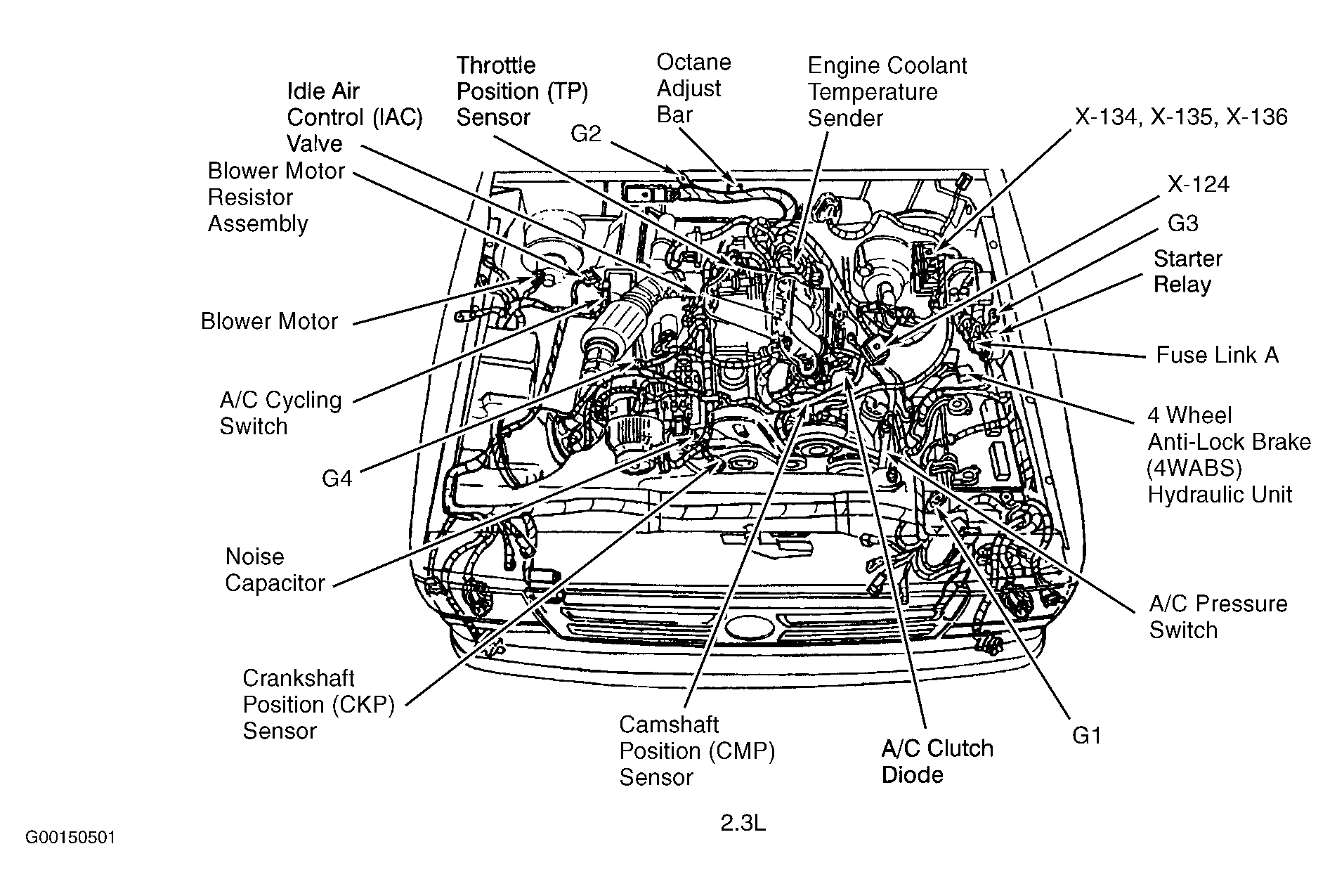| Engine Compartment Fuse/Relay Box (2.3L) | Left rear of engine compartment. See Figure . |