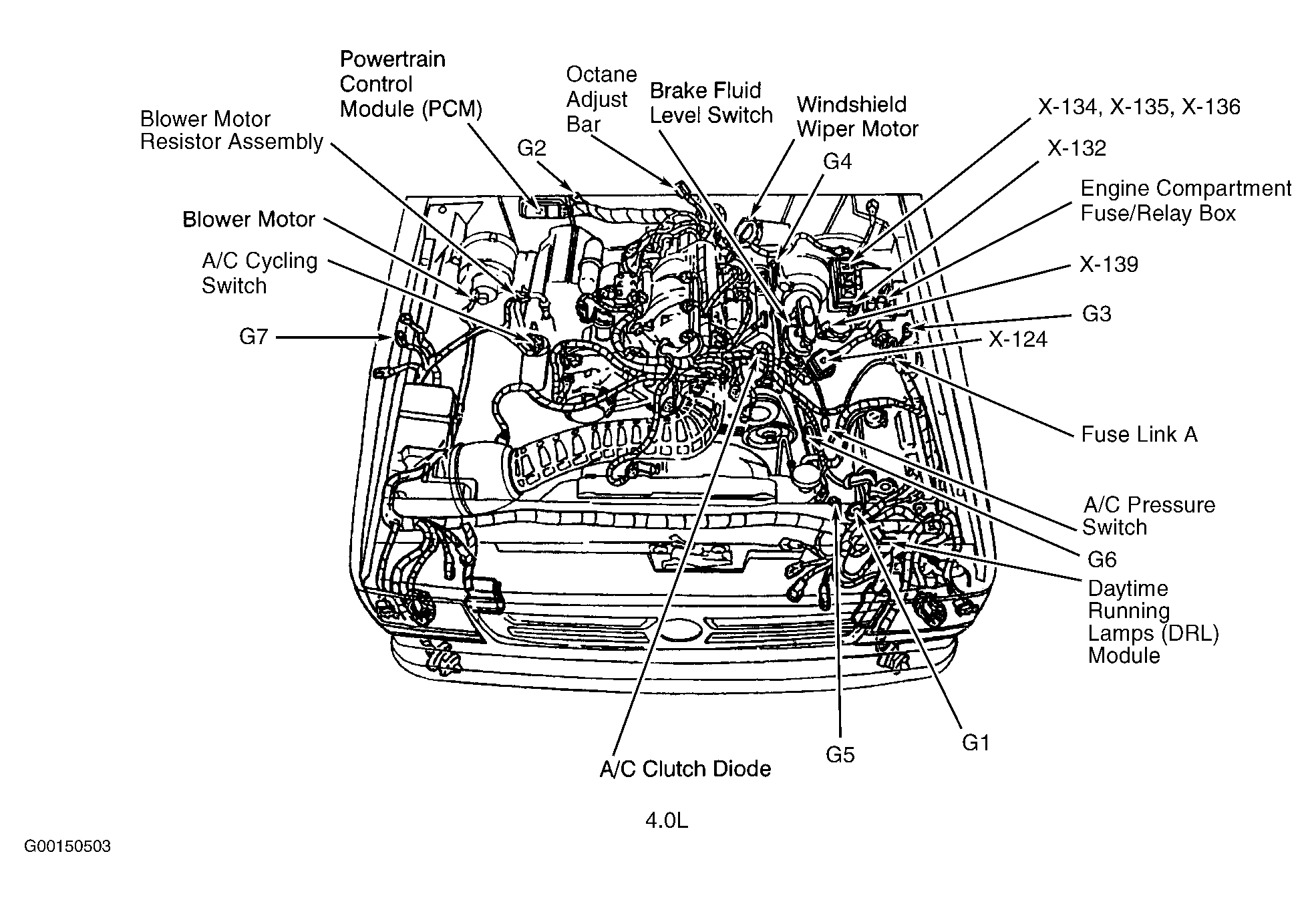 | Engine Compartment Fuse/Relay Box (4.0L) | Left rear of engine compartment. See Figure . |