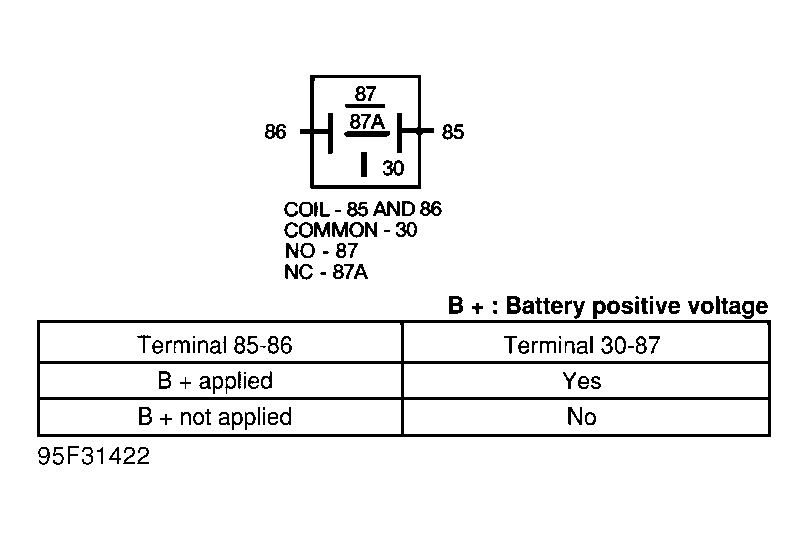 - Using DVOM, check for continuity between fuel pump relay terminals No. 85 and 86. Continuity should not exist. Using jumper wires, apply battery voltage to fuel pump relay terminals No. 85 and 86. Check continuity between fuel pump relay terminals No. 30 and 87. Continuity should exist. If specifications are not as specified, replace fuel pump relay.