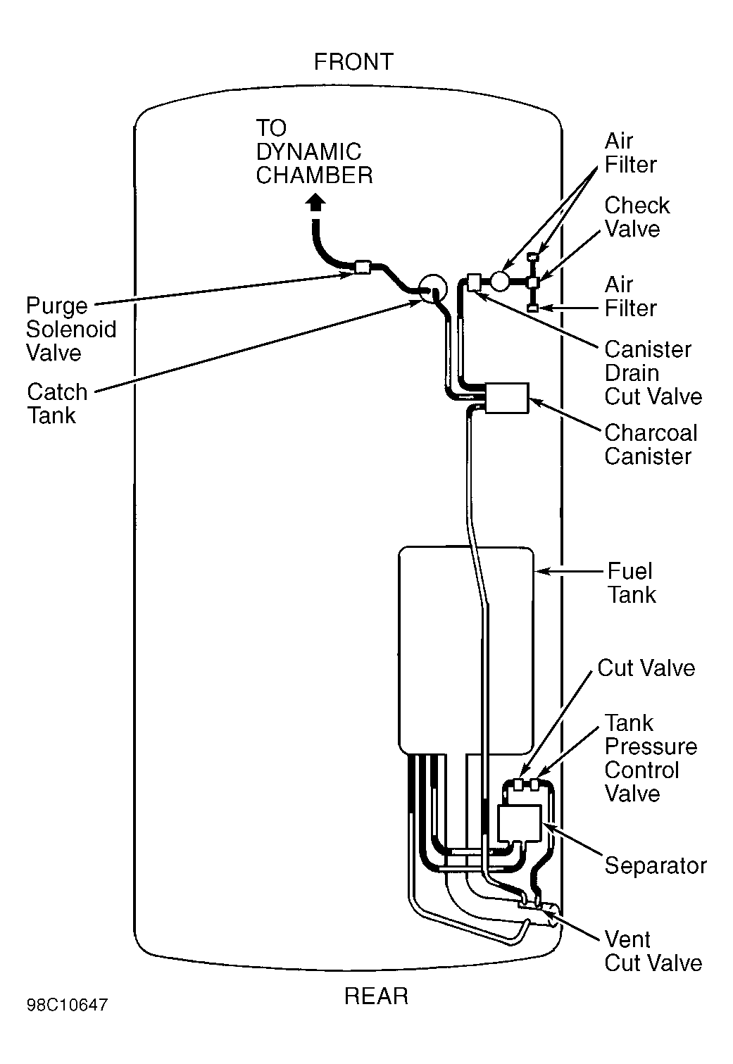 Purge system operation takes place when vehicle is accelerating in gear (off idle), engine is at operating temperature and oxygen sensor is functioning normally. Ensure all vapor lines are connected and in acceptable condition. See Fig 1 , Fig 2 or Fig 3 .