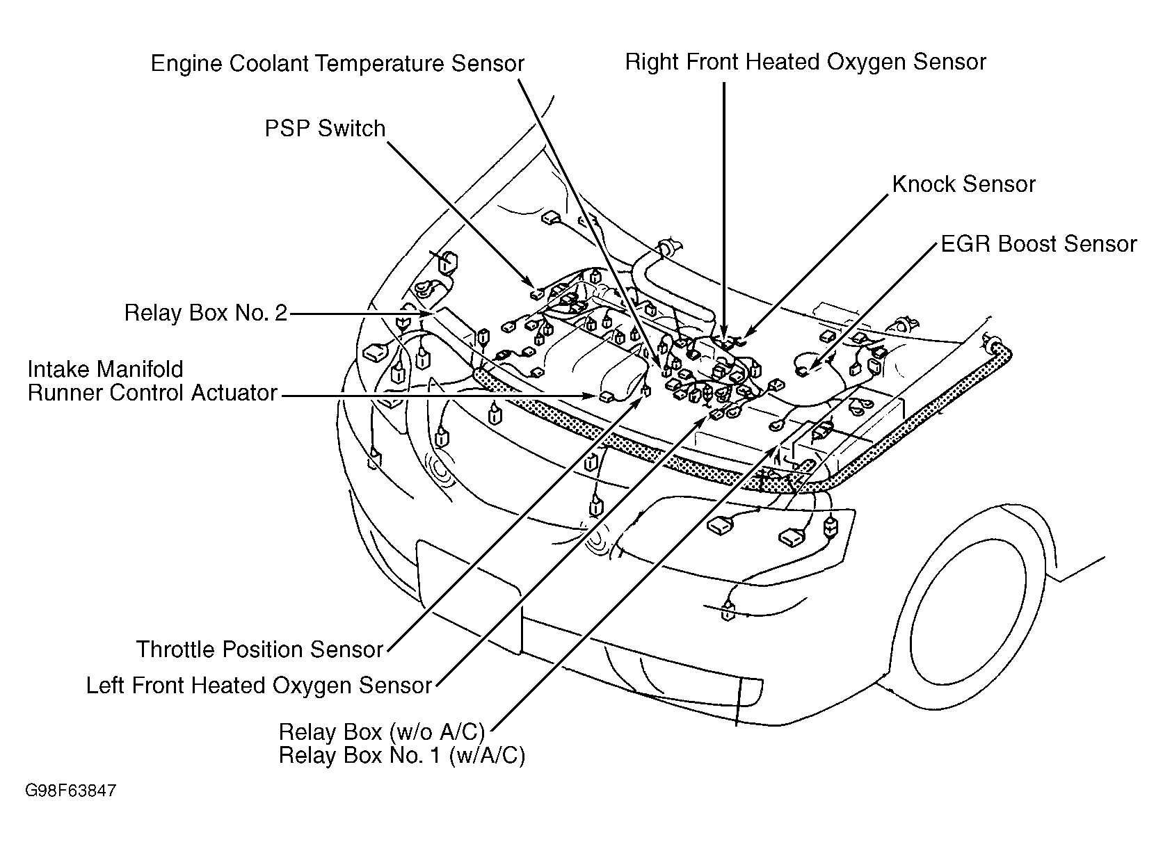 Relay Box No. 1 (W/ A/C) At left front corner of engine compartment. See Figure .