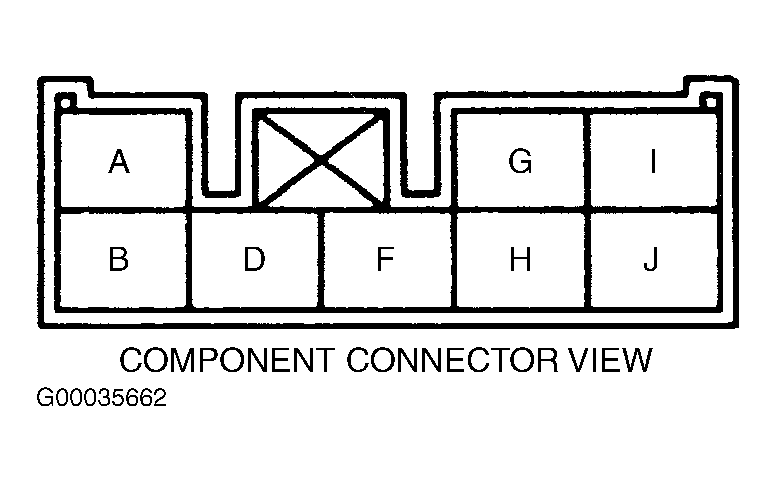 - Remove steering column cover to access switch connector. Turn ignition switch to ON position. Using a DVOM, backprobe harness connector. With O/D OFF switch in off (O/D OFF indicator off), measure voltage between chassis ground and terminal "J" on switch connector. See Fig 1. Battery voltage should be present. Depress O/D OFF switch (O/D OFF indicator on). No voltage should be present. If voltage is as specified, go to next step. If voltage is not as specified, check circuits to ground and PCM. Repair as necessary.