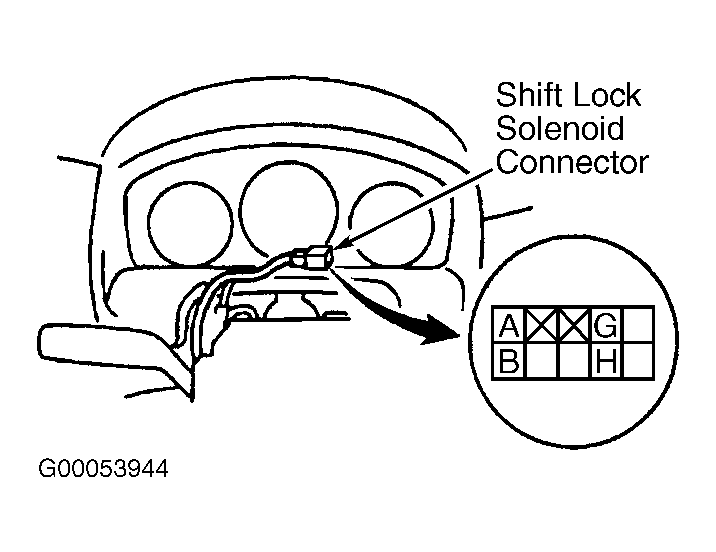 Disconnect negative battery cable. Remove steering column cover. Disconnect park position switch/shift lock solenoid connector. Check for continuity between terminals "A" and "B". See Fig 1 . Continuity should exist with selector lever in any position except "P". Replace as needed.