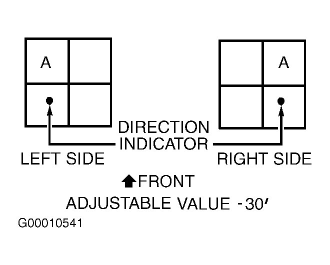 Raise and support front of vehicle. Remove upper strut-to-body nuts. Push strut mounting block downward, and turn to position "A". See Fig 1 . DO NOT turn to any other position or caster and camber will be out of specification. Reinstall and tighten nuts to specification. See TORQUE SPECIFICATIONS  .