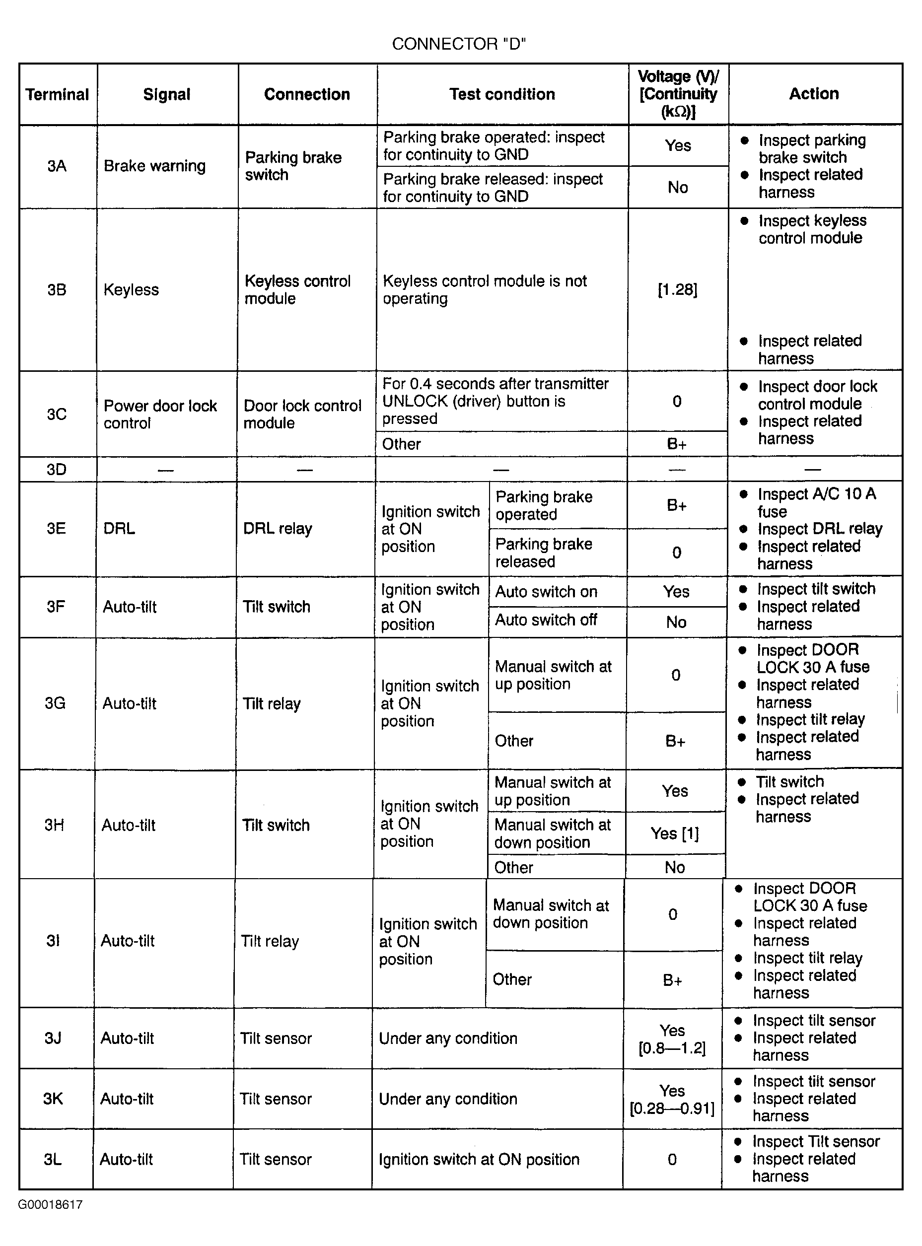 - If voltage or continuity are not as specified, check related components and wiring harnesses. If related components and wiring harnesses are okay, but system is still not functioning properly, replace CPU. See CENTRAL PROCESSING UNIT (CPU)