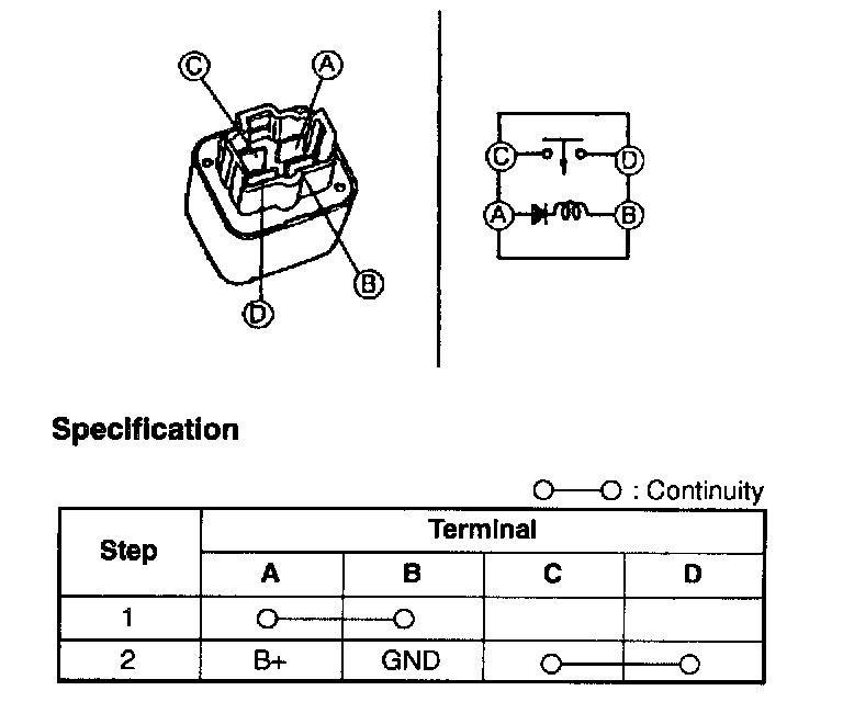 3. Inspect for continuity between terminals of the relay using an ohmmeter.