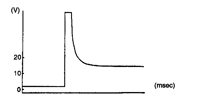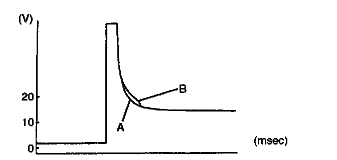 Counter electromotive voltage A, generated when the three-way solenoid valve or the fuel injector is turned off from on, shows irregular convergence because induced electromotive voltage B, generated by the plunger return operation, is added to it.