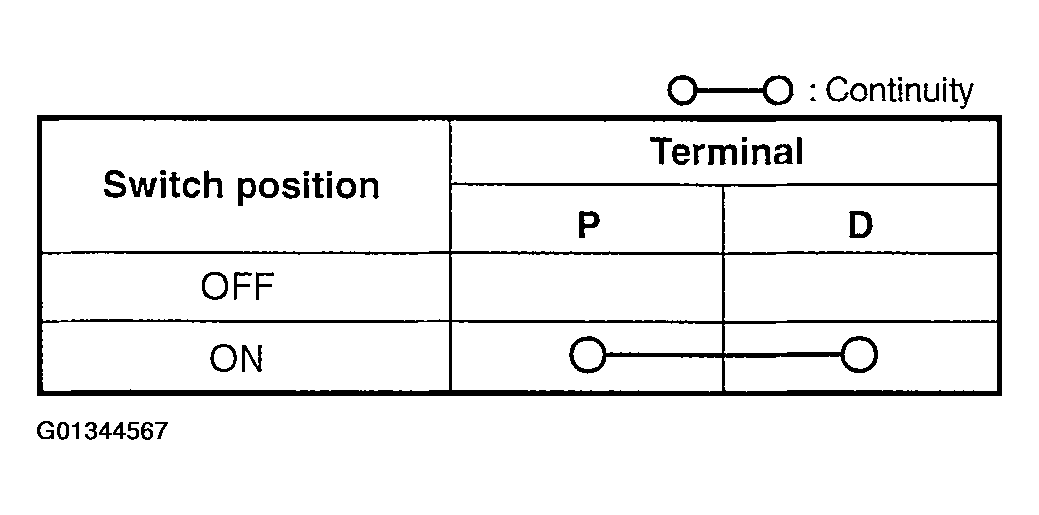 - Verify that the continuity between the light switch terminals is as indicated. See Fig 1.