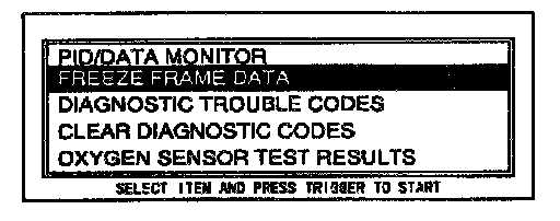 5. Move the cursor to FREEZE FRAME PID DATA.
