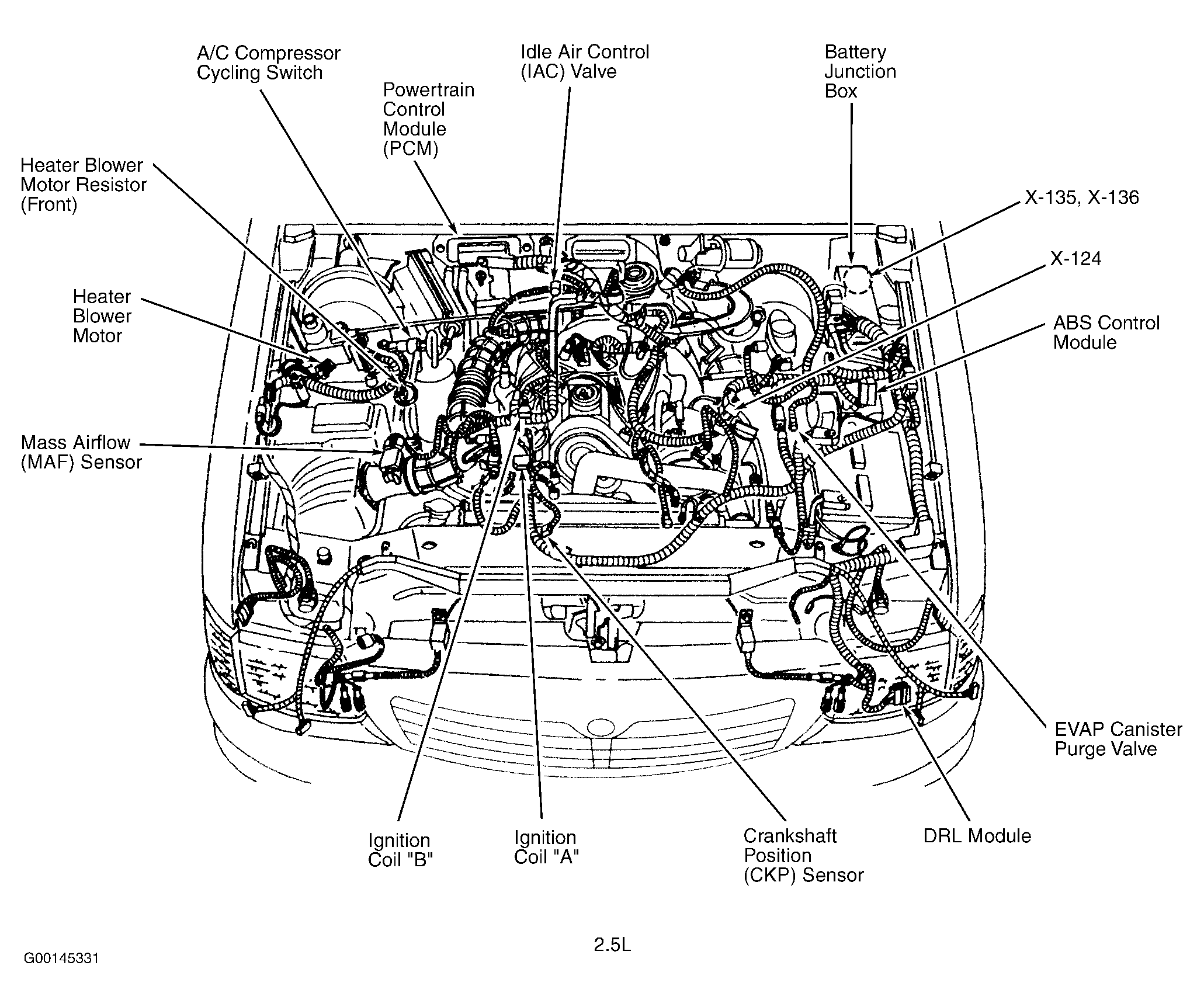 | Battery Junction Box (2.5L) | Left rear of engine compartment. See Figure . |