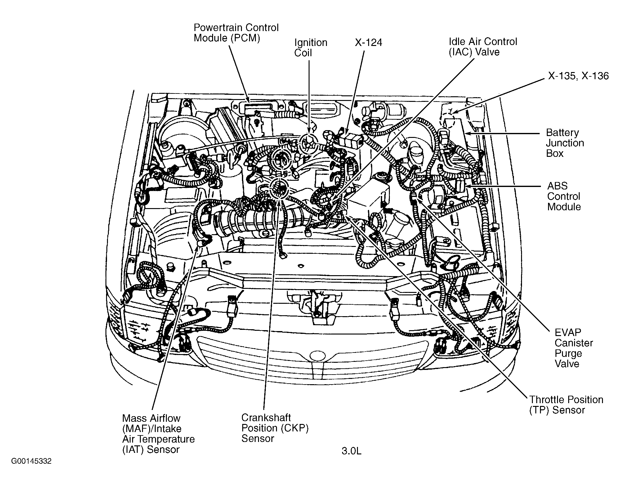 | Battery Junction Box (3.0L) | Left rear of engine compartment. See Figure . |