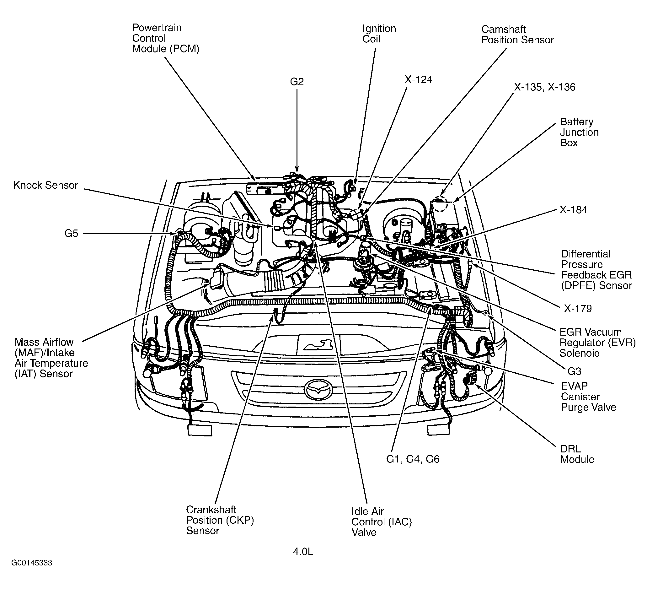 | Battery Junction Box (4.0L) | Left rear of engine compartment. See Figure . |