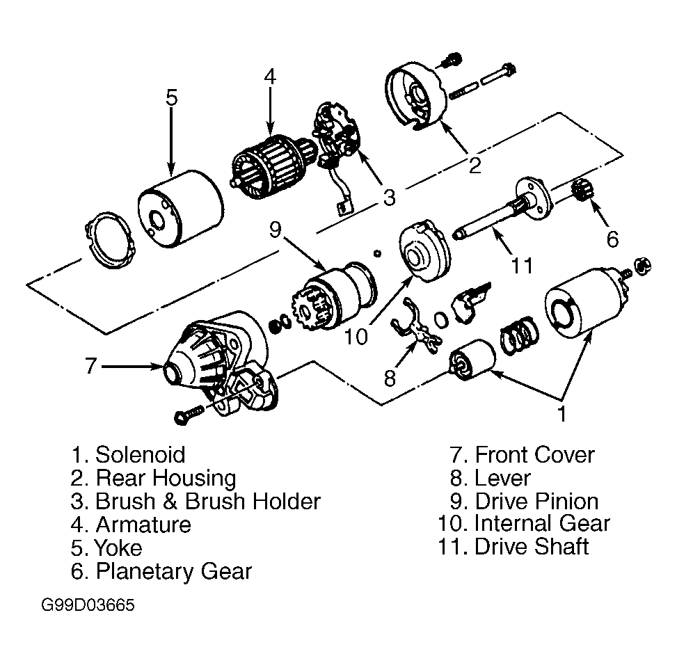 Fig 1: Exploded View Of Gear Reduction Type Starter (MX-5 Miata; MPV Is Similar)