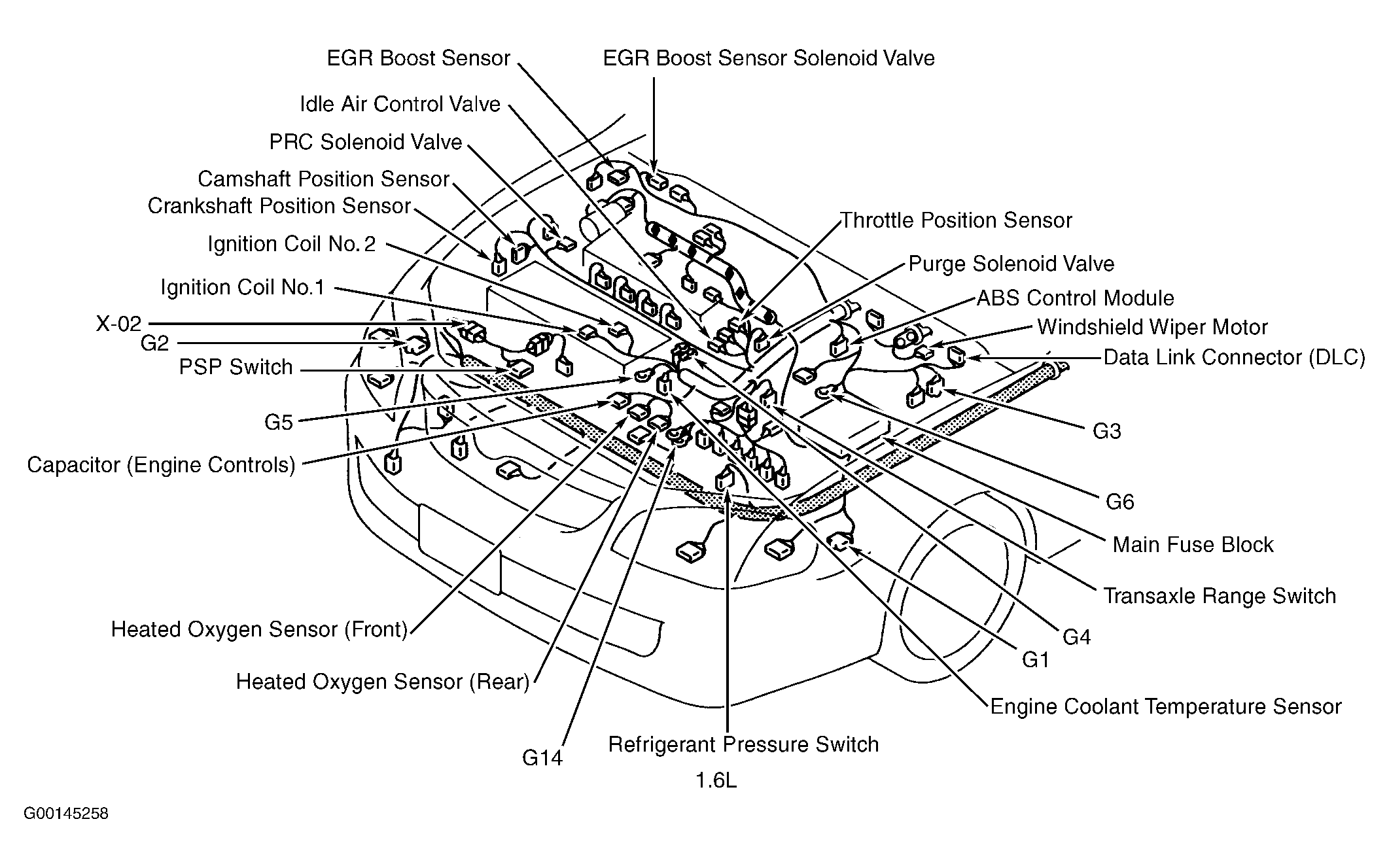 | ABS Control Module (1.6L) | At left rear corner of engine compartment. See Figure . |