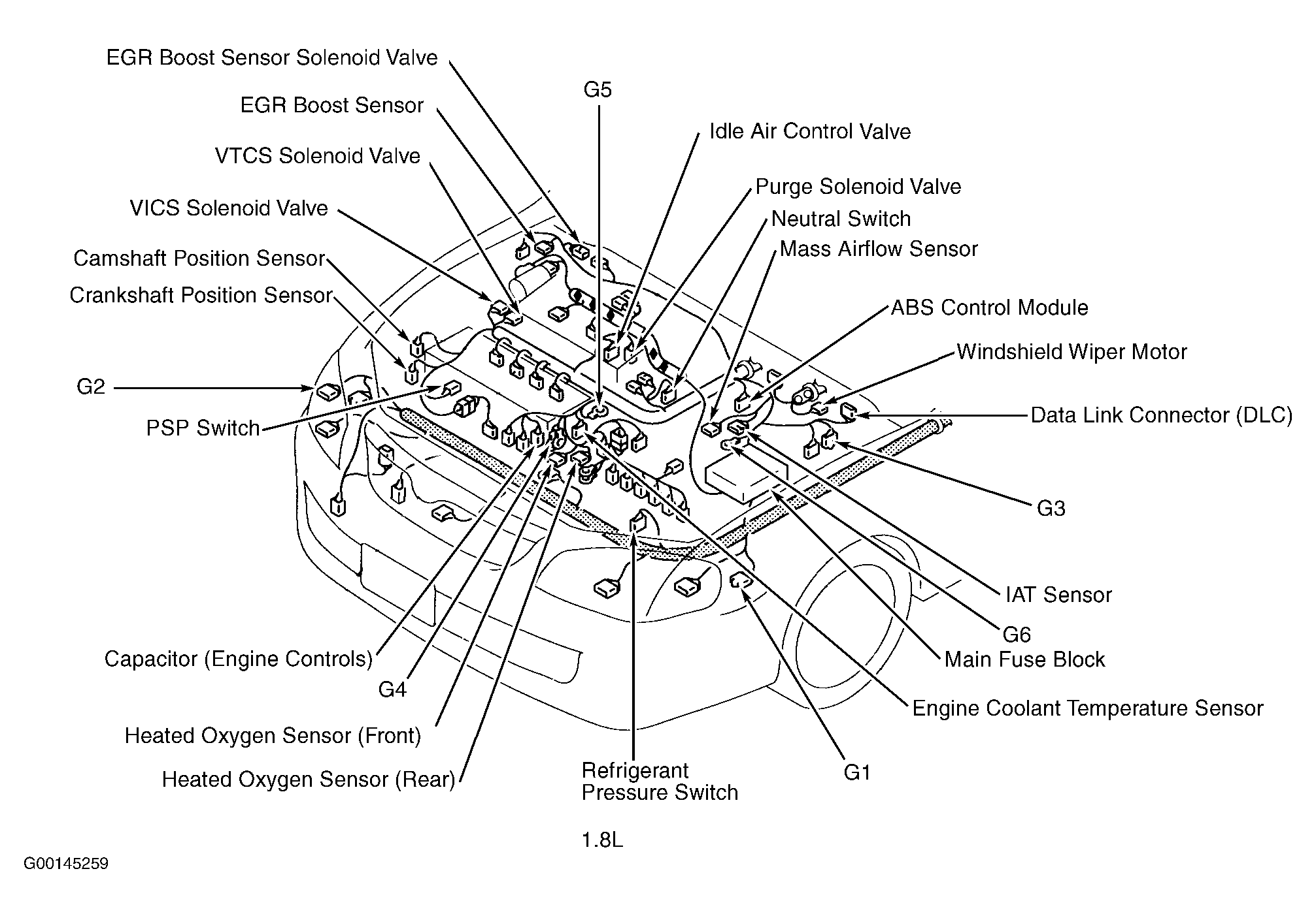 | ABS Control Module (2.0L) | At left rear corner of engine compartment. See Figure . |