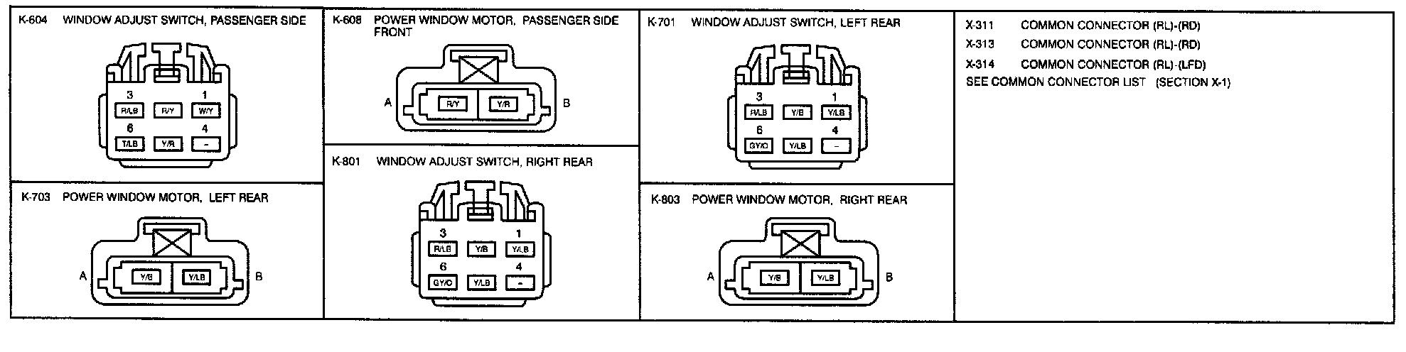 K-1b - Power Windows Connectors: