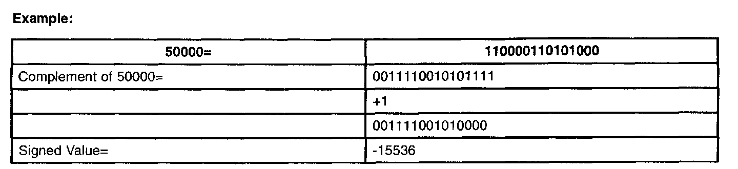 The conversion is done as follows: If the value is >32767 then complement (change 0's to 1's and 1's to 0's), add 1 and a negative sign.