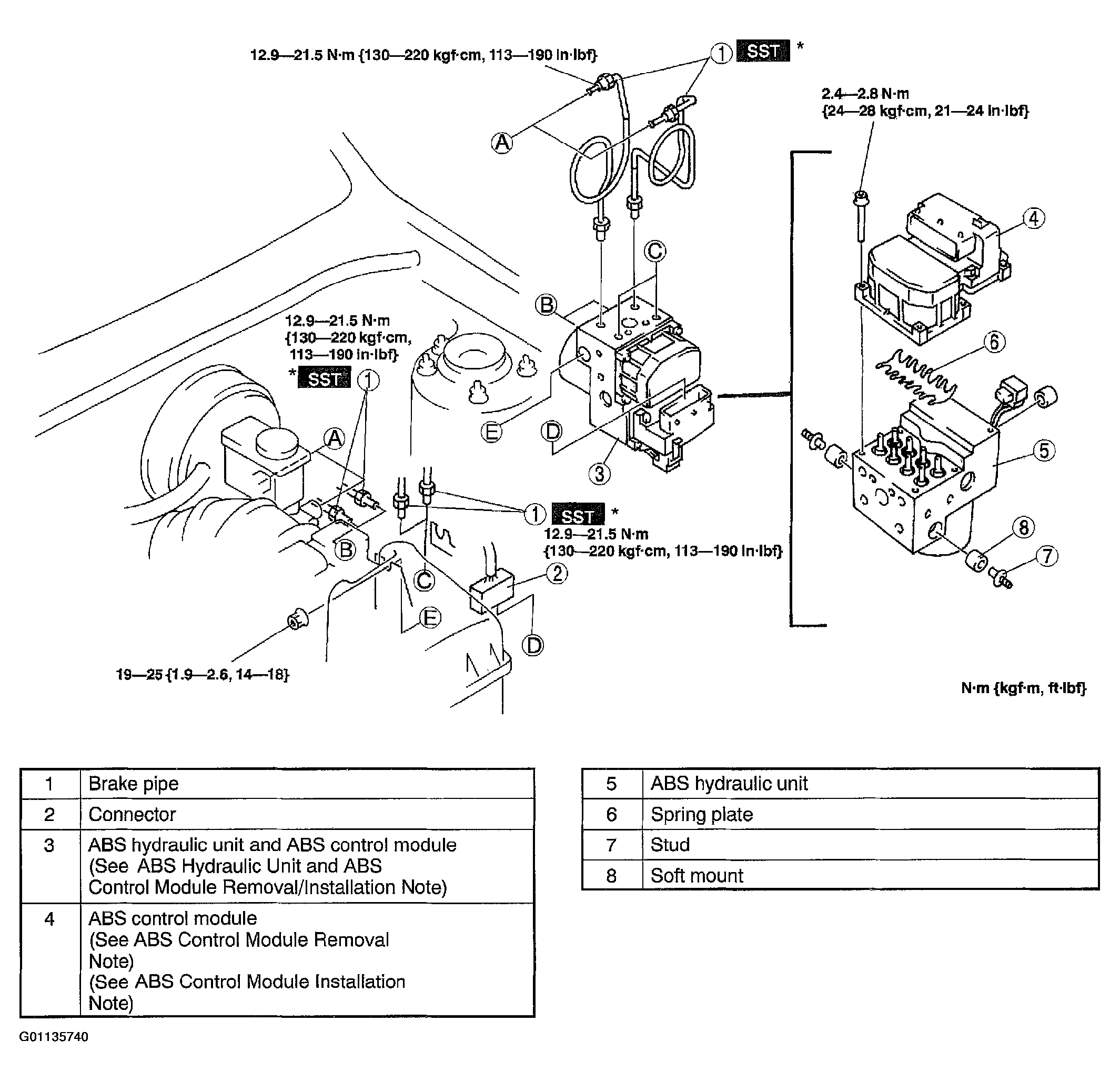 - The ABS hydraulic unit is not purchased as one part. Replace the ABS hydraulic unit and control module component as one assembly part if the ABS hydraulic unit is malfunctioning.